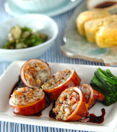 【メイン食材】イカ、エビ、キュウリ、エノキ。魚介類を使った、バラエティー豊かな献立です!