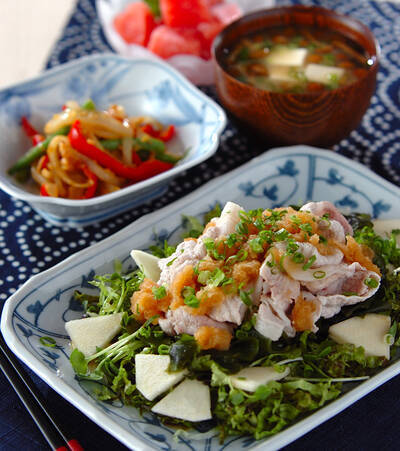 【メイン食材】サヤインゲン、トマト、ナス、土ショウガなど。夏バテに効く、スタミナ満点の献立です。