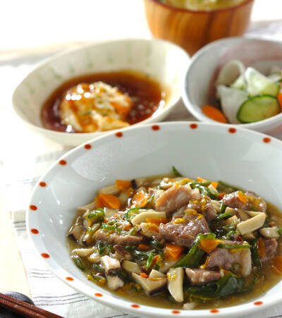 【メイン食材】松茸、小芋、モロヘイヤなど。やさしいダシの風味が味わえるメニューがいっぱい。