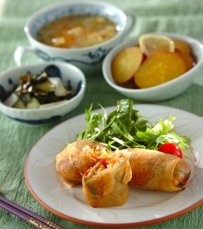【メイン食材】ウド、スナップエンドウ、芽キャベツなど。彩り豊かな野菜で食卓を囲む、楽しいメニューがいっぱい。