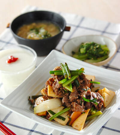 【メイン食材】タケノコ、山芋、イワシなど。タケノコの季節! 旬の食材の食感と風味を楽しむメニューが豊富。