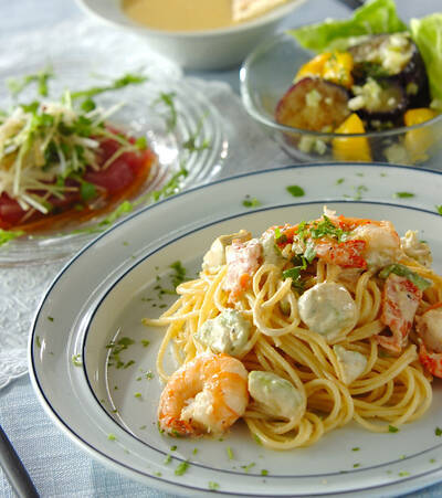 【メイン食材】エビ、アジ、イチゴなど。魚介類やお肉などバリエーション豊かな食材で和食、洋食、エスニックを堪能出来ます!