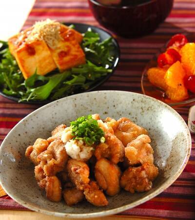 • 主菜 さわやかおろしポン酢でいただく鶏のサクッと竜田揚げ