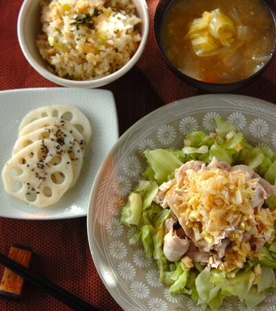 • 主菜 豚しゃぶとキャベツのネギドレッシング和え