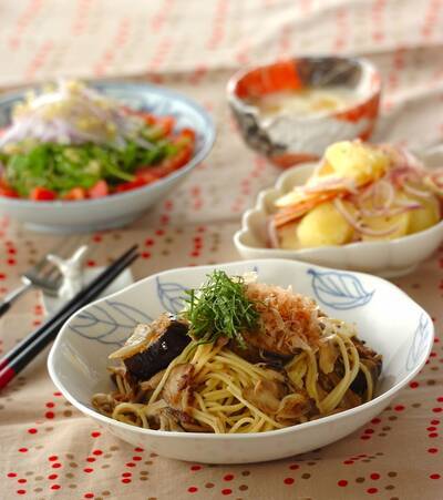 • 主食 ツナとナスの和風スパゲティー
