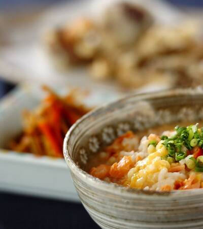 • 主食 簡単で人気の雑炊 塩鮭と梅 ほっこり胃に優しい by金丸 利恵