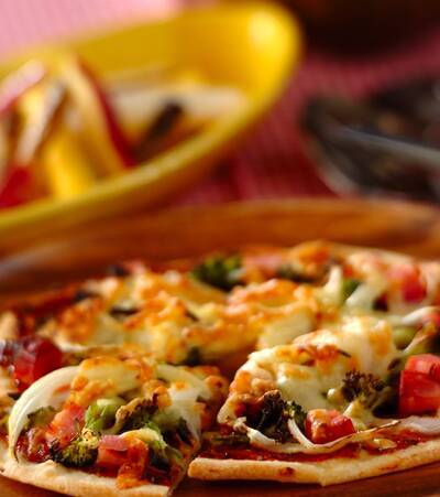 • 主食 ゴロゴロベーコンとブロッコリーの薄焼きピザ