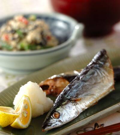 • 主菜 オーブントースターでサンマの塩焼き