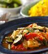 • 主食 エビとチンゲンサイのカレー風味焼きそば