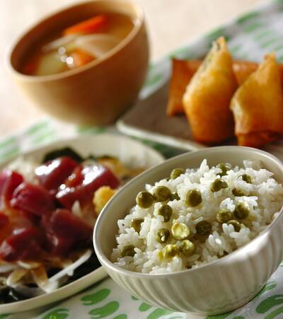 • 主食 グリーンアスパラとベーコンの卵チャーハン