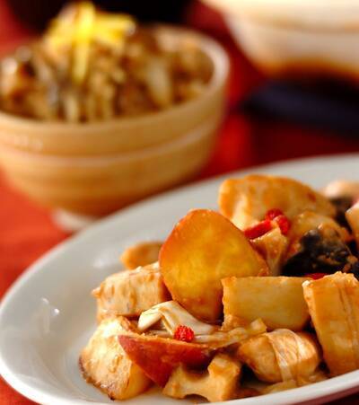 • 主菜 ささ身と秋野菜のゴマみそ炒め