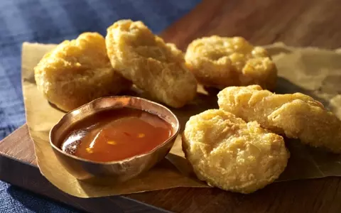 また「メープルカスタードパイ」の発売期間中、サイドメニューに欠かせないチキンマックナゲットから、新ソース「スパイシーバッファローソース」もあわせて登場。ニューヨーク生まれの、辛さと酸っぱさのバランスがクセになるソース。