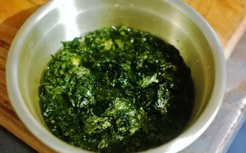2.1をザルに明け、キッチンペーパーなどに包んでしっかり水を絞る。