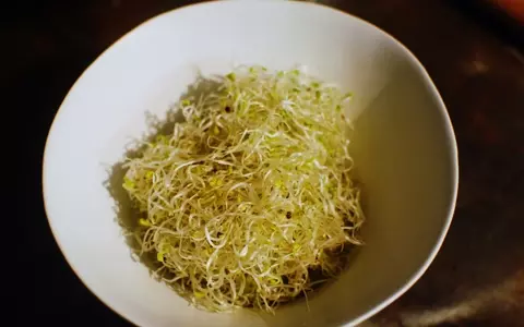 4.器にご飯を入れ、上にスプラウトをのせる。