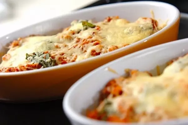3、200℃に予熱したオーブンに入れ、チーズがトロ~ッと溶けるまで15~20分焼く。仕上げにドライパセリやタバスコ等を振る。