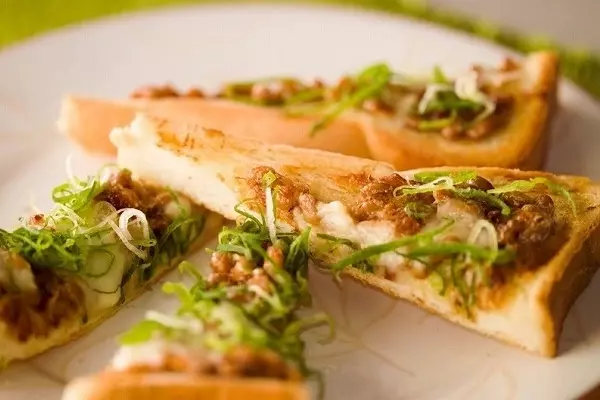 和食のイメージが強い納豆ですが、洋風アレンジもお任せあれ! いつもの納豆に、マヨネーズと鰹節を入れてパンに乗せます。そして納豆と同じ発酵食品のとろけるチーズをさらに乗せてオーブントースターへ。マヨネーズのコクが納豆の味に丸みを出してくれます。材料を混ぜてパンに乗せて焼くだけなので、忙しい朝にオススメの一品です。納豆ととろけるチーズとのコラボレーションはうなる美味しさ! パン党さんに是非オススメしたい新しい納豆の朝ごはんレシピです。