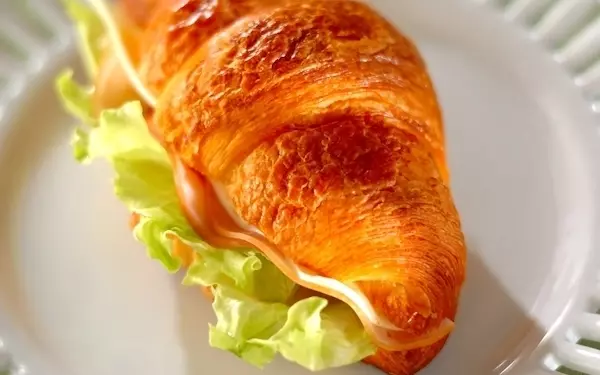 クロワッサンとハム、レタス、スライスチーズでパパッと作れる簡単サンドイッチです。シンプルなサンドイッチですが、何度も味わいたくなる美味しさ。5分で作れるので、時間がないときのランチにもピッタリ。