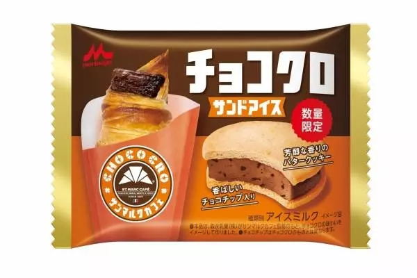 サンマルクカフェの人気商品「チョコクロ」が、アイスになって登場。森永乳業のアイス「チョコクロサンドアイス」として、全国のイオングループにて数量限定販売される。