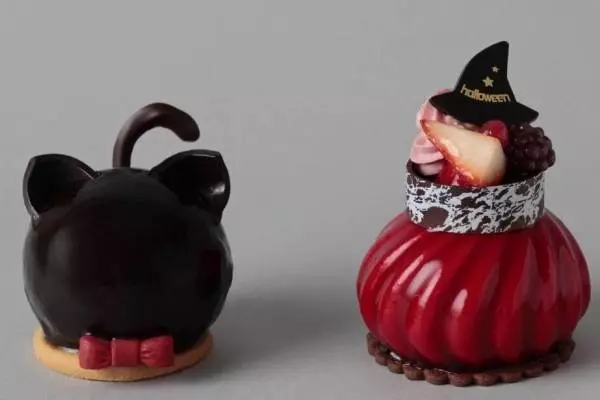リーガロイヤルホテル(大阪)のハロウィンスイーツ、黒猫の栗ムース&かぼちゃクリーム入りメロンパン