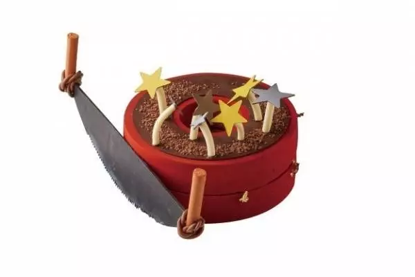 ザ・リッツ・カールトン東京のクリスマスケーキ、"のこぎり"チョコ付きバームクーヘン風ケーキ