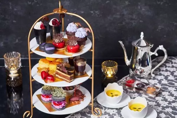 ハロウィン向けに開催される「ブラック・ハロウィン アフタヌーンティー」は、その名の通り、黒をメインとしたスイーツと、紫や赤などのハロウィンらしい彩りのスイーツなどを展開する。