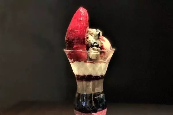 ジョウタロウ サイトウ カフェ「洋梨とカシスのパフェ」数量限定で、洋梨シャーベット×7層の味わい