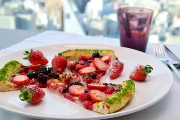 (ホット)サツマイモのカラメリゼ 黒ゴマ、醬油と味醂 | あまおうとマスカルポーネチーズのピッツァ ベリー、ローストアーモンドとストロベリーチョコレート | 野菜春巻きのレモン添え 八女茶塩、スイートチリソース | グリーンピースとミントのクリーミィースープ クリスピーベーコン、クルトンとブラックペッパー | タイチキンレッドカレーとライス ココナッツミルク、パプリカとフライドレッドオニオン