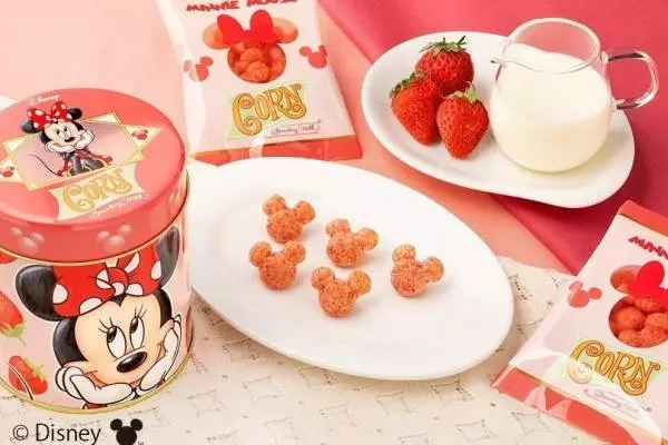 「ミニーマウス/コーン いちごミルク味」は、5袋⼊りと、スペシャル缶の2タイプで販売。