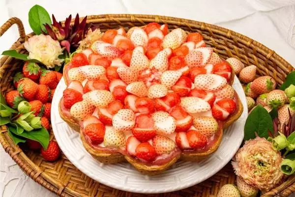 キル フェ ボン“白イチゴ×桃薫”2種のブランド苺たっぷりの淡い春色タルト、ミルクティー風味で
