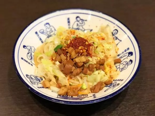 【秦唐記】で食べられるビャンビャン麺の味は3種類。中でも人気なのがこちらの汁なし油そば風『ヨウポー麺』。ヨウポーとは「油がはじける」という意味らしいのですが、一体どういうことなのか……