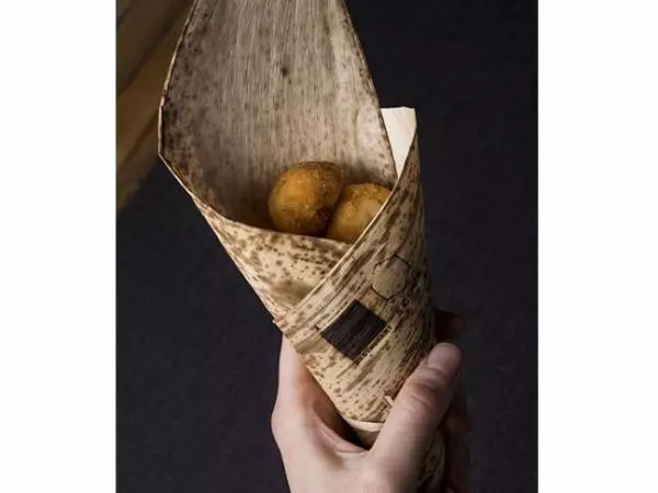 訊けばこれは未来のコンビニ食をイメージしたもので、決してジャンクなものではなく、また食べる際に着物を汚さず一口で食べられ、かつ、その所作までが美しく見えるように配慮されたものだということです。