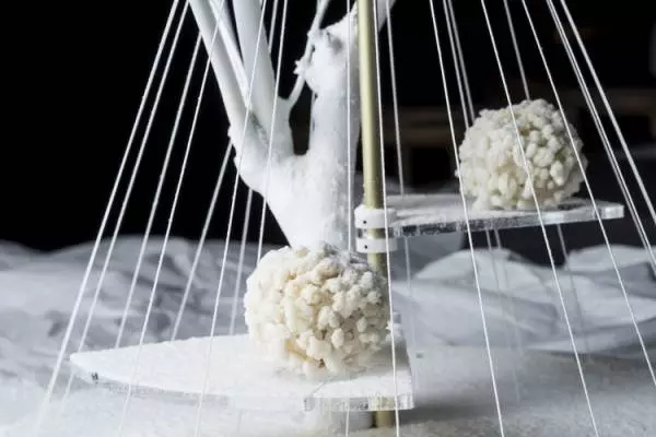 金沢の冬の風物詩である雪つりを模した器の上には白い大福のようなもの。