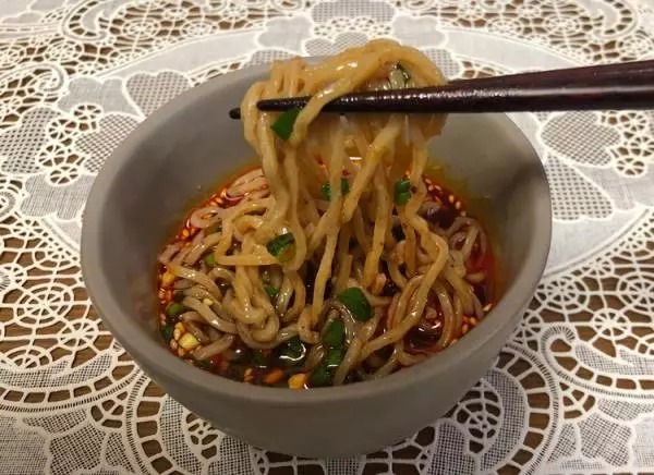 餃子のあとは山椒麺を加えます。たれと山椒のほんのりとした辛味が混ざり合います。好みによって温かい麺でも冷たい麺でもどちらでも楽しめます