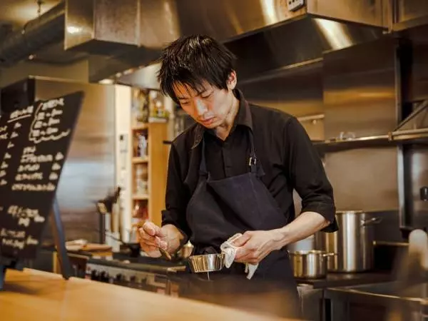 そして、カウンターに置かれた小さな黒板に目をやれば、『エビとブッラータ』や『生姜のスープ』、『特製ブイヤベース』、『滋賀近江牛ランプ』等々手書きのメニューがずらり。コースも5,000円から用意されてはいるものの、ここではアラカルトで楽しむのが得策だ。その日の気分、お腹の調子に合わせて自分の好きなものを好きなようにオーダーする。それでこそ、食いしん坊の本懐と言うものだ。
