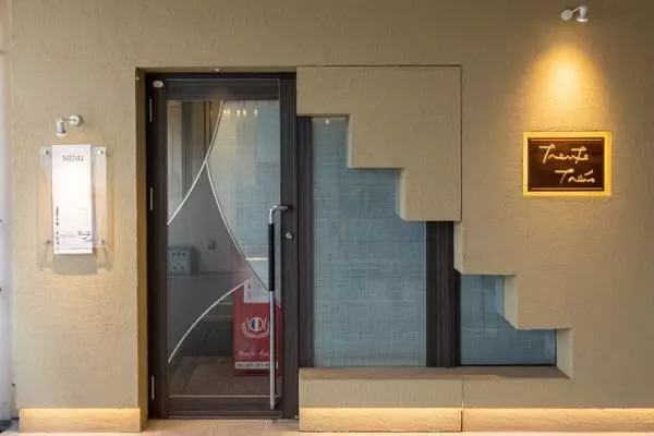 千葉駅で下車し、繁華街を抜けて歩くこと5分、飲食店がひしめくこの地域のビルの2階にあるのが【トラント・トロワ】です。2019年に創業したこちらのお店では、フランスのミシュラン三つ星店で修業を積んだシェフが腕を振るう本格的なフランス料理を楽しむことができます。
