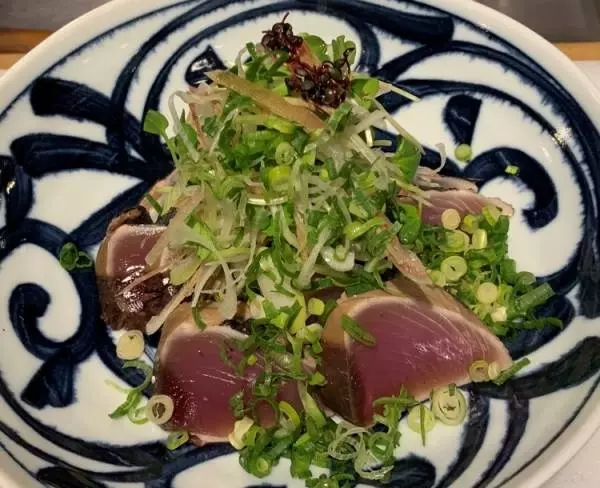 『藁焼き鰹の塩叩き 味噌ポン酢添え』