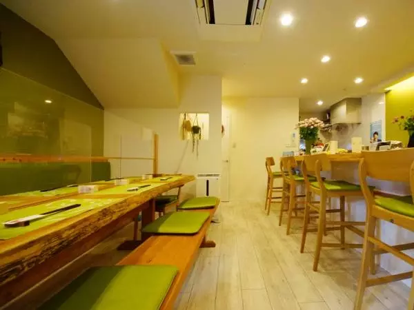 ちょっぴり隠れ家的な佇まいのお店。中へ入ると黄緑が基調のほっこりと心落ち着く空間が広がり、毎日10種ほど並ぶおばんざいがゲストの気分を高めてくれます。ドリンクはビールのほか、イスラエル産のワイン、日本酒などがスタンバイ。食材に限りがあるため、事前に予約をしてから出かけて。6名以上であれば貸切利用も可能です。