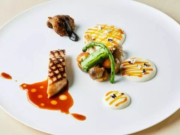毎月変わるメニューには、地元の素材と鳥取県境港から直送される新鮮な魚介をふんだんに使用しています。どの料理も、味や見た目に細部までこだわり、フランス・リモージュの白磁器に盛られた姿はまるで芸術作品のよう。それぞれの料理とのマリアージュが楽しめるようなワインも数多く揃っています。