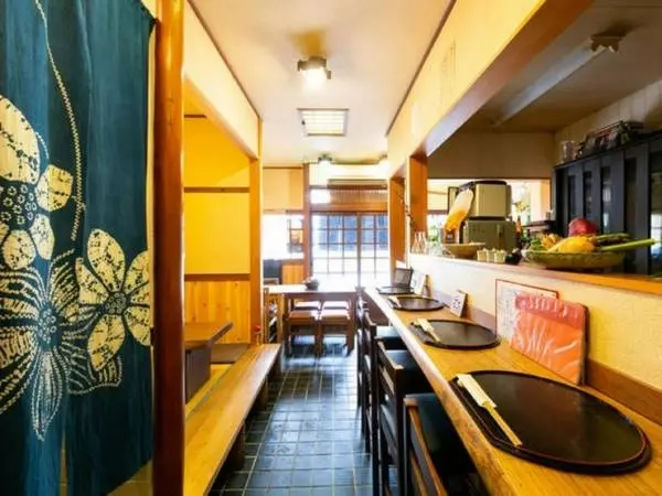 築50年の建物をフルリノベーションしたレトロな店内は、木格子のデザインがポイントになった軽快でリズミカルなデザイン。カウンター席、テーブル席に加えて、上質な雰囲気が漂う畳敷きの完全個室もあります。