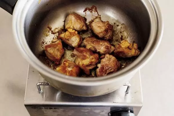 しっかりと鶏肉を焼くこと。香ばしく焼くことで、風味がアップ。