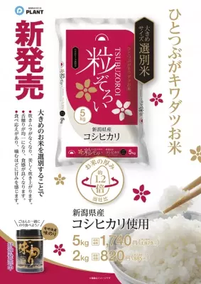 新潟県産コシヒカリ使用「つや・ねばり・甘み・香り」の4拍子揃った上品なお米「粒ぞろい」3月15日発売!
