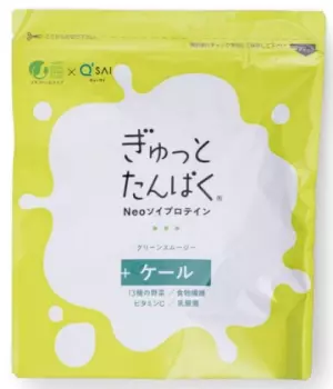 同商品は不二製油株式会社(以下、不二製油)とのコラボレーションによって実現。大豆たんぱく生産量No.1を誇る不二製油の大豆プロテインと、ケール青汁売り上げNo.1のキューサイのケールを組み合わせたグリーンスムージーとなっています。