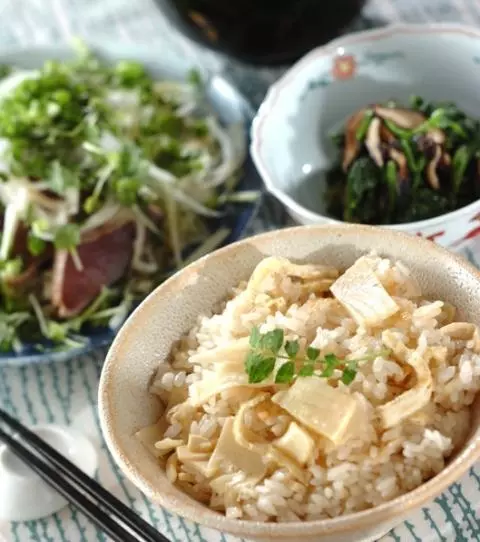 今日の献立は「シンプルタケノコご飯」を含めた全4品。