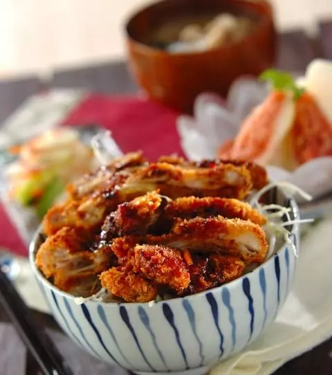サクッと揚がったチキンにピリ辛ソースをかけたボリューム満点の丼です。