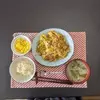 キムチの量が少なかったのかなぁ…。お手本のように赤くならなかったですが…汗 肉みそとキムチの味がおり重なって、おいしかったです。