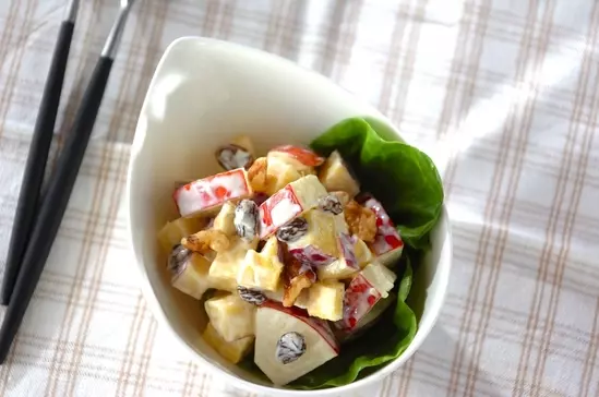 サツマイモのほっくりとした甘さと、リンゴのシャキシャキとした食感の違いが楽しめるサラダです。