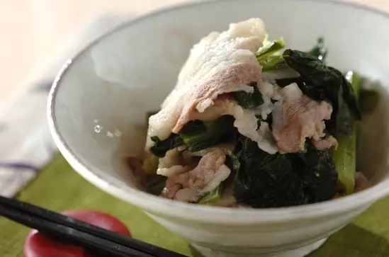 ビタミン・ミネラル豊富な小松菜に、ビタミンB1、良質なタンパク質豊富な豚肉を合わせてバランスアップ。