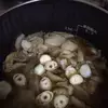 全体に油がまわれば、だし汁を加え、煮立てば火を弱めて10分煮る。