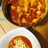 濃厚なトマトスープに、スパイシーなカレーの香りも味も相性バッチリでした。トマトジュースがなかったので、ケチャップを大さじ山盛り2杯くらい入れました。色々な食材を入れて、また作りたいです!