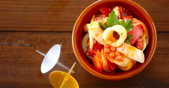 白ワイン、ローリエを入れた熱湯でイカ、ゆでタコ足をゆでてザルに上げ、<マリネ液>に合わせる。味がなじんだら、器に盛り合わせてイタリアンパセリを添える。